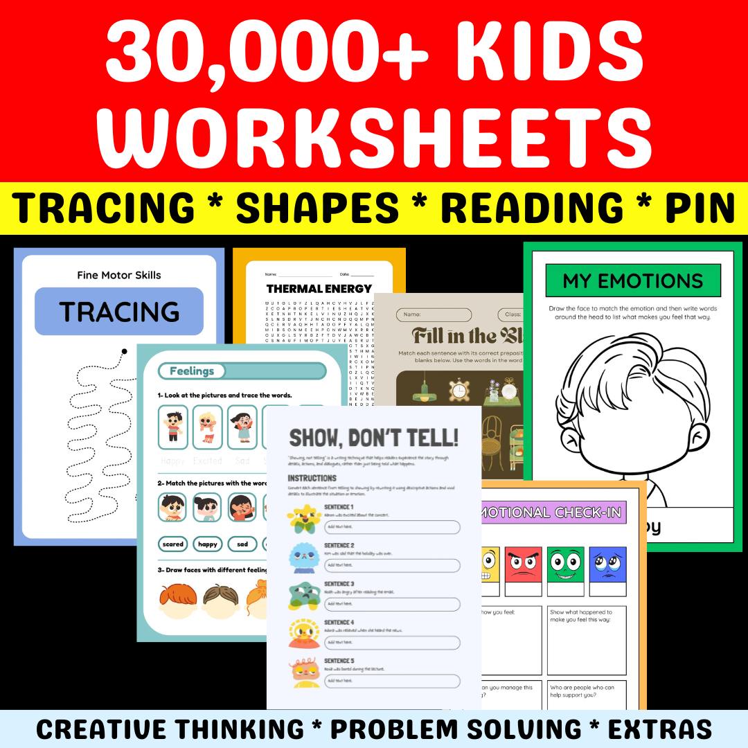 Our 30,000+ Kids Worksheets cover everything from reading writing and math to science thinking and art. Each worksheet is thoughtfully designed to make learning fun engaging and meaningful while building real skills step by step.
